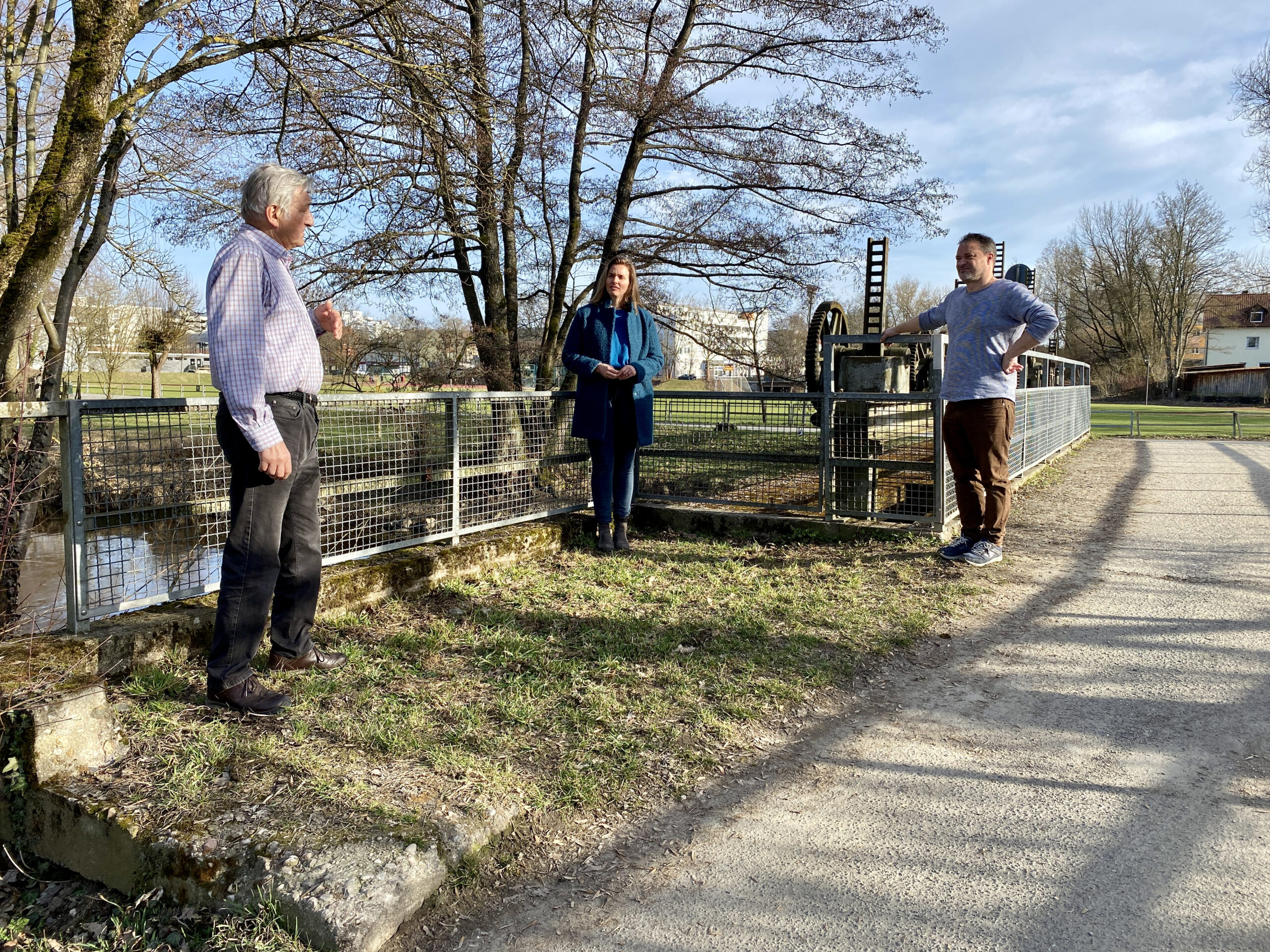 Die Stadträte von Grün.Bunt.Weiden haben sich im Stadtbad an dem Wehr vor dem Parkplatz getroffen, auf dem eventuell ein Wohnmobil-Stellplatz errichtet werden soll. Mehrere Bürger sorgen sich, dass der dort heimische Eisvogel durch einen solchen Stellplatz vertrieben werden könnte.