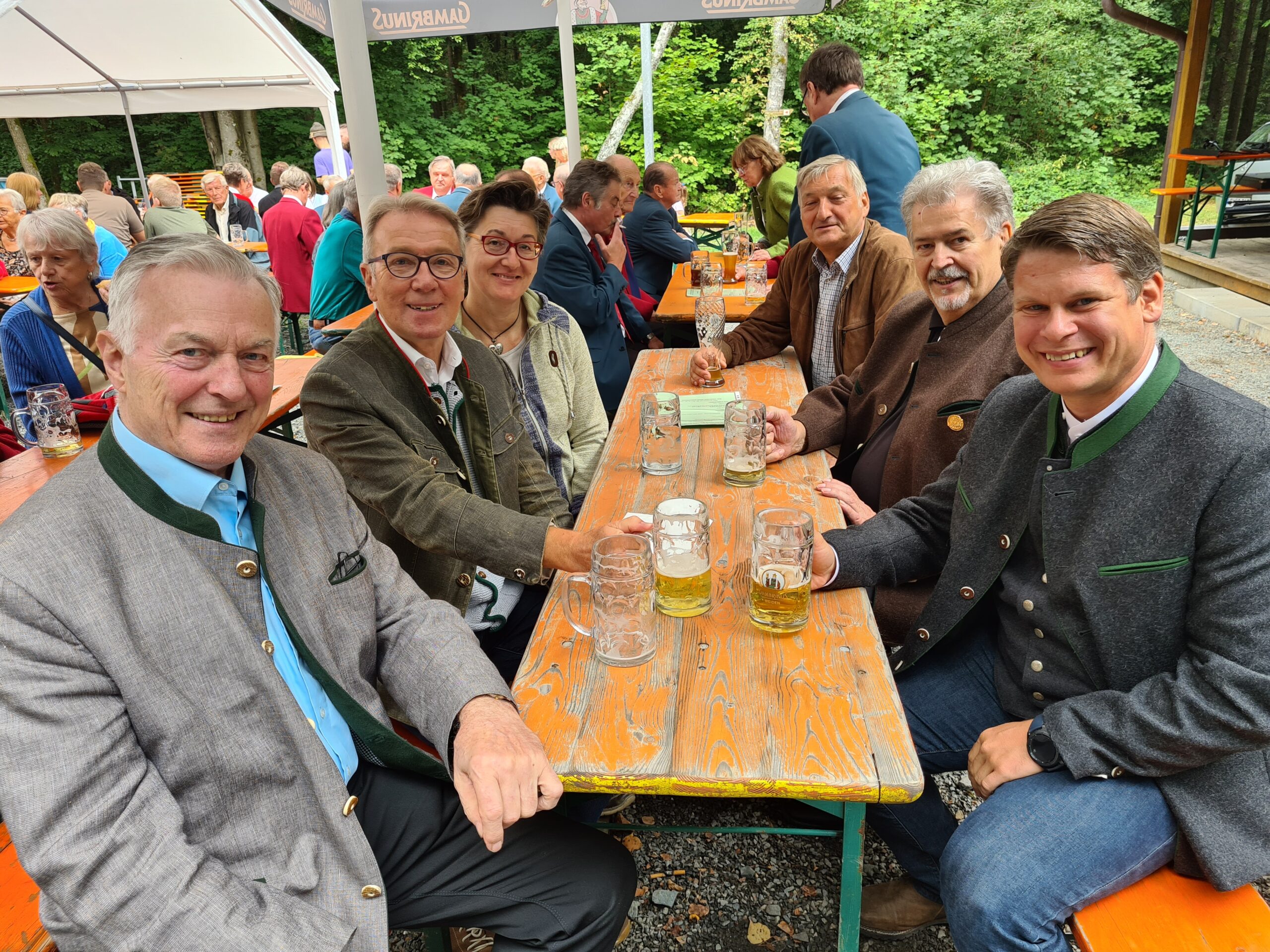 Nur ganz am Rande um Politik ging es beim Turmfest des Zweigvereins des Oberpfälzer Waldvereins (OWV) an der Strobelhütte unterm Vierlingsturm, aber ganz vermeiden lassen sich Diskussionen über Politik nicht, wenn Stadträt*innen beieinander sitzen. In die Haare gerät man sich in so entspannter Atmosphäre jedoch absolut nicht.