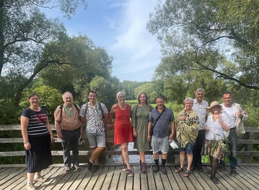 Die Grünen-Europaabgeordnete Jutta Paulus (Mitte, im roten Kleid) hat sich über den geplanten Kiesabbau bei Grafenwöhr informiert; mit dabei unsere Oberpfälzer Landtagsdirektkandidatin Laura Weber (neben Paulus). Foto: Stefan Neidl